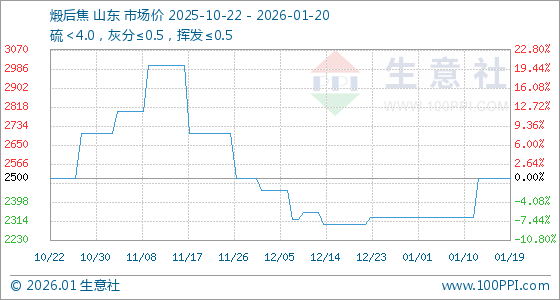 1月20日,生意社煅后焦基准价为2500.00元/吨,与本月初(2330.00元/吨)相比,上涨了7.30%。