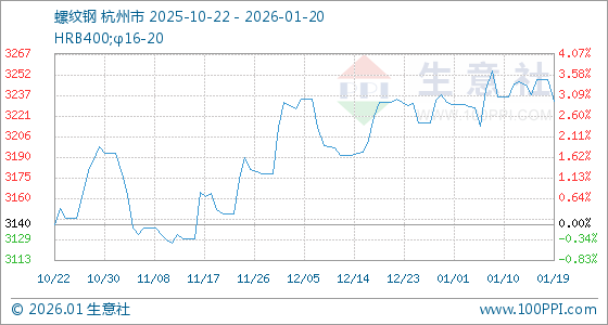 1月20日,生意社螺纹钢基准价为3232.34元/吨,与本月初(3232.00元/吨)相比,上涨了0.01%。