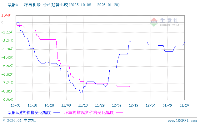 1月20日, 华东液体环氧树脂市场整理运行,原料端窄幅上涨,主力工厂负荷较高,市场供应充足,环氧树脂下游多刚需,主流商谈参考13400-13650元/吨净水出厂。