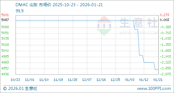 1月21日,生意社DMAC基准价为4950.00元/吨,与本月初(5087.50元/吨)相比,下降了2.7%。