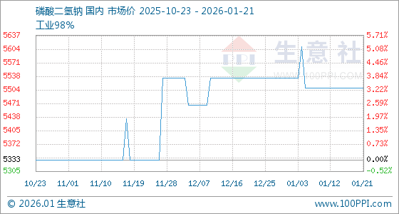 1月21日,生意社磷酸二氢钠基准价为5510.00元/吨,与本月初(5533.33元/吨)相比,下降了0.42%。