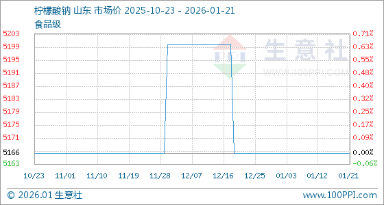 1月21日,生意社柠檬酸钠基准价为5166.67元/吨,与本月初持平。