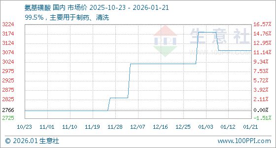 1月21日,生意社氨基磺酸基准价为3087.50元/吨,与本月初(3183.33元/吨)相比,下降了3.01%。