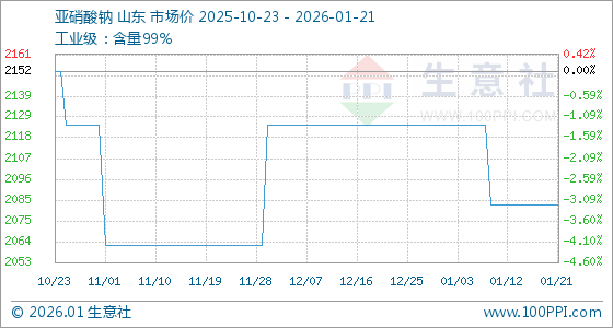 1月21日,生意社亚硝酸钠基准价为2083.33元/吨,与本月初(2125.00元/吨)相比,下降了1.96%。
