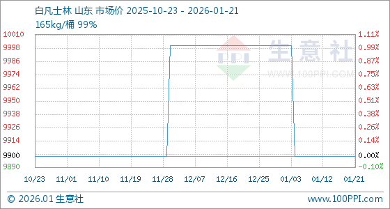 1月21日,生意社白凡士林基准价为9900.00元/吨,与本月初(10000.00元/吨)相比,下降了1%。
