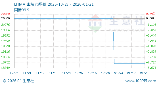 1月21日,生意社EHMA基准价为18700.00元/吨,与本月初持平。
