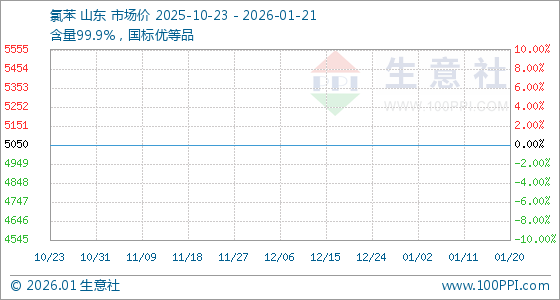 1月21日,生意社氯苯基准价为5050.00元/吨,与本月初持平。