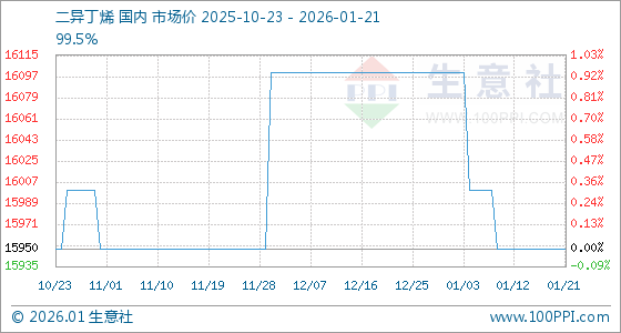 1月21日,生意社二异丁烯基准价为15950.00元/吨,与本月初(16100.00元/吨)相比,下降了0.93%。