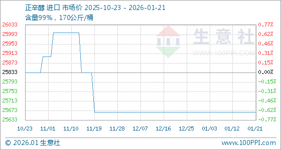 1月21日,生意社正辛醇基准价为25666.67元/吨,与本月初持平。