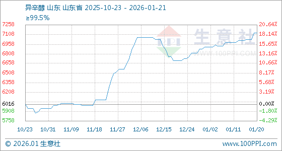 1月21日,生意社异辛醇基准价为7133.33元/吨,与本月初(6916.67元/吨)相比,上涨了3.13%。