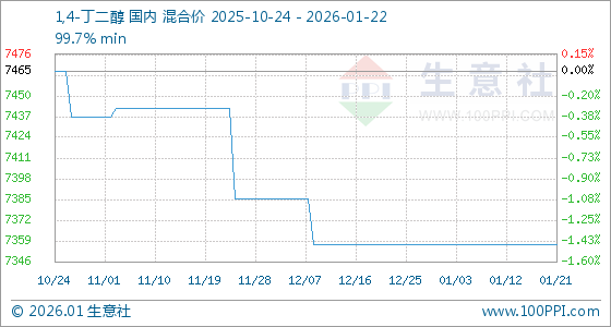 1月22日,生意社1,4-丁二醇基准价为7357.14元/吨,与本月初持平。