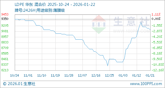 1月22日,生意社LDPE基准价为9116.67元/吨,与本月初(8400.00元/吨)相比,上涨了8.53%。