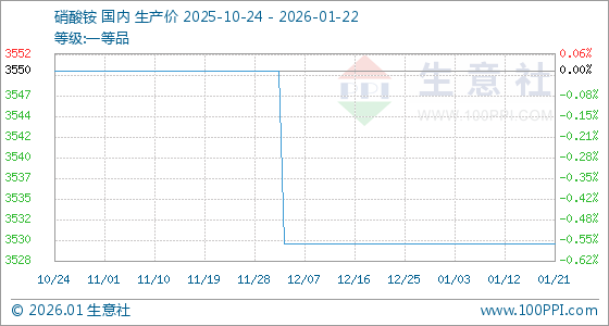 1月22日,生意社硝酸铵基准价为3530.00元/吨,与本月初持平。