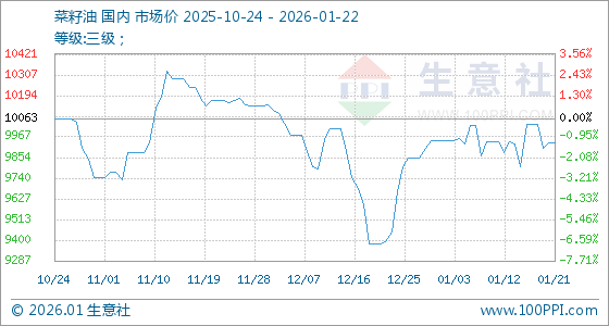 1月22日,生意社菜籽油基准价为9936.00元/吨,与本月初(9948.33元/吨)相比,下降了0.12%。