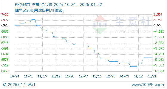 1月22日,生意社PP(纤维)基准价为6600.00元/吨,与本月初(6535.00元/吨)相比,上涨了0.99%。