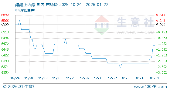 1月22日,生意社醋酸正丙酯基准价为6462.50元/吨,与本月初(6390.00元/吨)相比,上涨了1.13%。