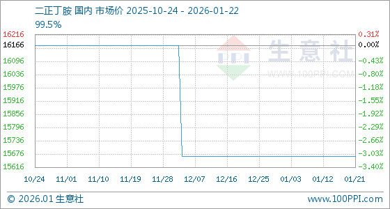 1月22日,生意社二正丁胺基准价为15666.67元/吨,与本月初持平。