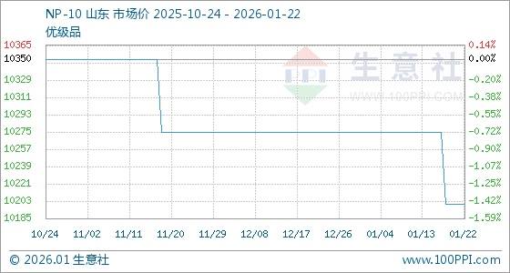 1月22日,生意社NP-10基准价为10200.00元/吨,与本月初(10275.00元/吨)相比,下降了0.73%。