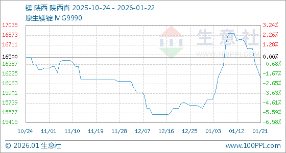 1月22日,生意社镁基准价为16150.00元/吨,与本月初(15725.00元/吨)相比,上涨了2.70%。