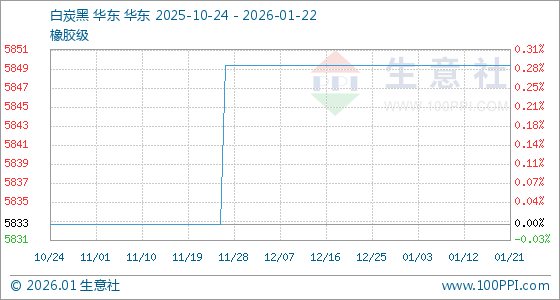 1月22日,生意社白炭黑基准价为5850.00元/吨,与本月初持平。