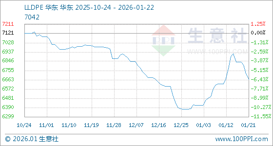 1月22日,生意社LLDPE基准价为6668.34元/吨,与本月初(6410.00元/吨)相比,上涨了4.03%。