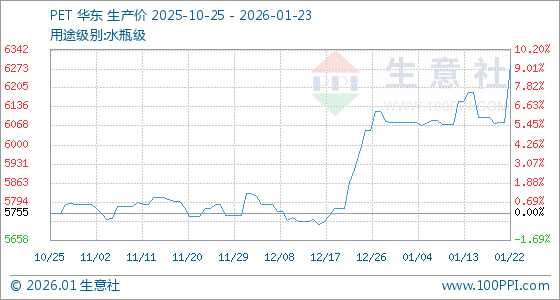 1月23日,生意社PET基准价为6285.00元/吨,与本月初(6080.00元/吨)相比,上涨了3.37%。