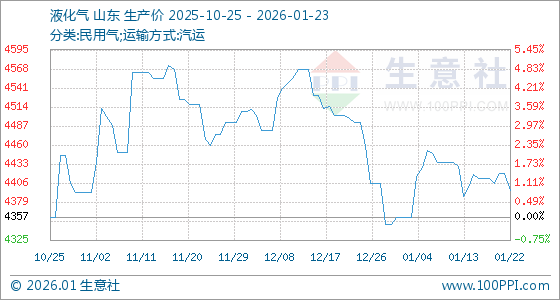 1月23日,生意社液化气基准价为4395.00元/吨,与本月初(4357.50元/吨)相比,上涨了0.86%。