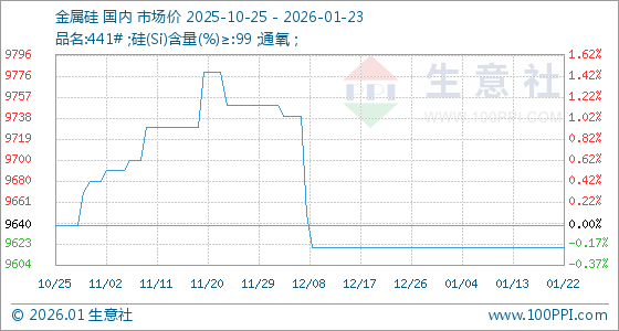 1月23日,生意社金属硅基准价为9620.00元/吨,与本月初持平。