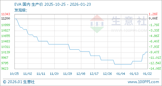 1月23日,生意社EVA基准价为10150.00元/吨,与本月初(9766.67元/吨)相比,上涨了3.92%。