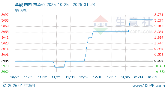 1月23日,生意社草酸基准价为3085.71元/吨,与本月初(3057.14元/吨)相比,上涨了0.93%。