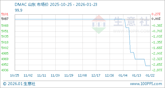 1月23日,生意社DMAC基准价为4950.00元/吨,与本月初(5087.50元/吨)相比,下降了2.7%。