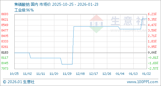 1月23日,生意社焦磷酸钠基准价为8633.33元/吨,与本月初(8533.33元/吨)相比,上涨了1.17%。