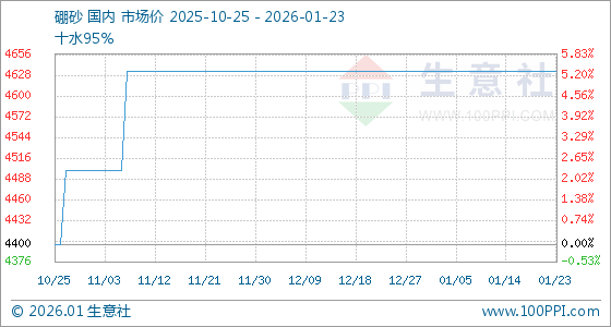 1月23日,生意社硼砂基准价为4633.33元/吨,与本月初持平。