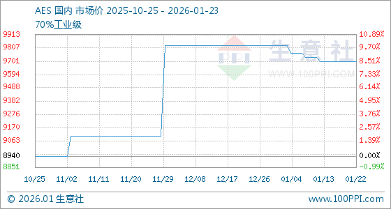 1月23日,生意社AES基准价为9700.00元/吨,与本月初(9825.00元/吨)相比,下降了1.27%。
