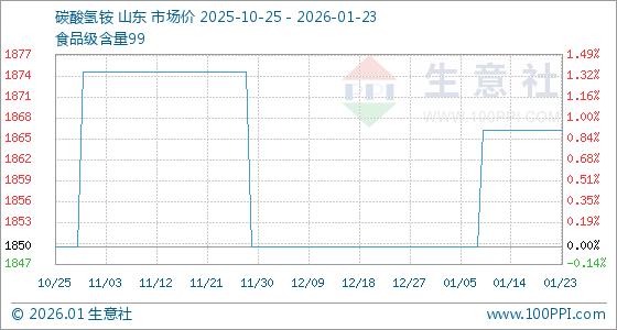 1月23日,生意社碳酸氢铵基准价为1866.67元/吨,与本月初(1850.00元/吨)相比,上涨了0.90%。