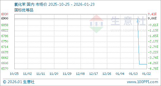 1月23日,生意社氯化苯基准价为6600.00元/吨,与本月初(6900.00元/吨)相比,下降了4.35%。