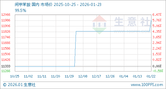 1月23日,生意社间甲苯胺基准价为12000.00元/吨,与本月初(11833.33元/吨)相比,上涨了1.41%。