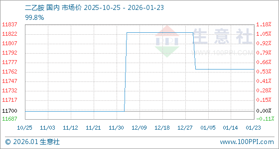 1月23日,生意社二乙胺基准价为11766.67元/吨,与本月初持平。