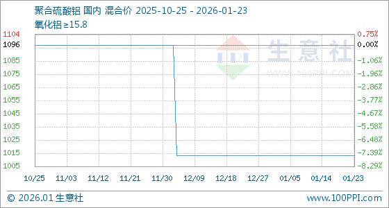 1月23日,生意社聚合硫酸铝基准价为1014.00元/吨,与本月初持平。