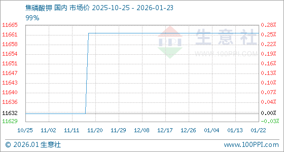 1月23日,生意社焦磷酸钾基准价为11662.50元/吨,与本月初持平。