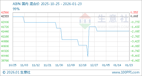 1月23日,生意社AIBN基准价为41500.00元/吨,与本月初持平。