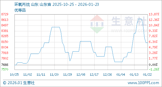 1月23日,生意社环氧丙烷基准价为8133.33元/吨,与本月初(7733.33元/吨)相比,上涨了5.17%。