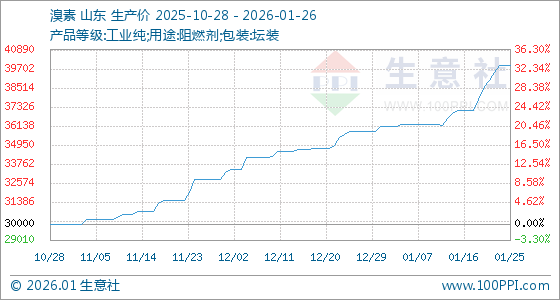 1月26日,生意社溴素基准价为39900.00元/吨,与本月初(36100.00元/吨)相比,上涨了10.53%。
