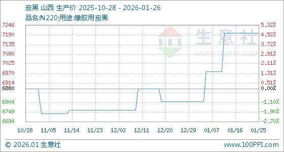 1月26日,生意社炭黑基准价为7200.00元/吨,与本月初(6810.00元/吨)相比,上涨了5.73%。