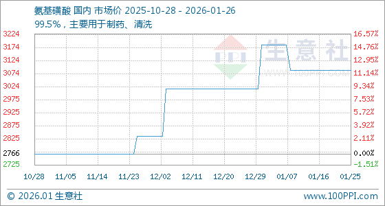 1月26日,生意社氨基磺酸基准价为3087.50元/吨,与本月初(3183.33元/吨)相比,下降了3.01%。