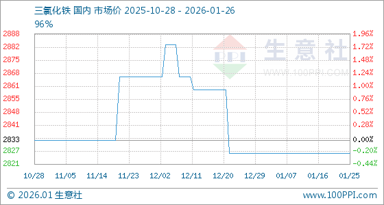 1月26日,生意社三氯化铁基准价为2826.67元/吨,与本月初持平。