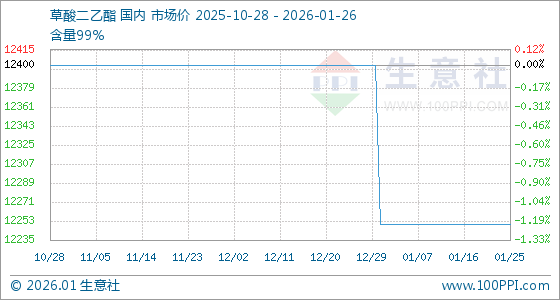 1月26日,生意社草酸二乙酯基准价为12250.00元/吨,与本月初持平。