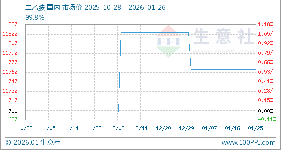 1月26日,生意社二乙胺基准价为11766.67元/吨,与本月初持平。