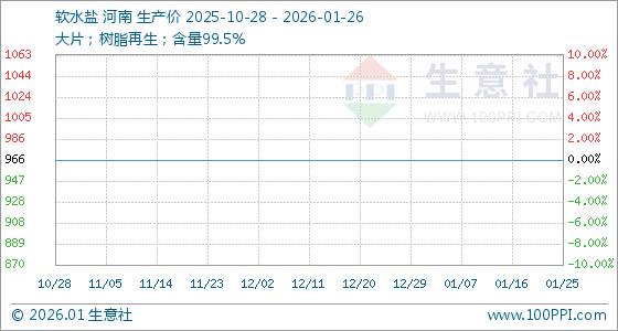 1月26日,生意社软水盐基准价为966.67元/吨,与本月初持平。