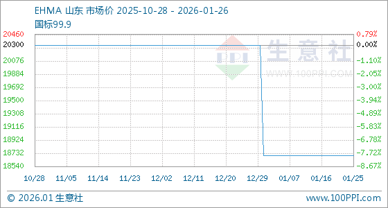 1月26日,生意社EHMA基准价为18700.00元/吨,与本月初持平。